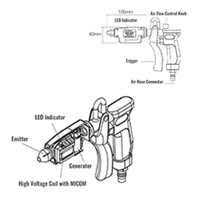 Mặc dù tất cả nhân viên, bàn làm việc và sàn nhà đều được nối đất đúng cách, nhưng vẫn có một số tĩnh điện tại các địa điểm sản xuất. Vì vậy, trung hòa tĩnh điện là điều cần thiết để duy trì tỷ lệ lỗi thấp vì sản phẩm dễ bị tích điện khi chúng tiếp xúc với các vật liệu khác ngay cả khi các vật liệu khác được nối đất. Các chất cách điện tích điện giữ lại các điện tích trong thời gian dài vì chúng không thể cung cấp một đường dẫn tốt cho các điện tích tĩnh.Máy ion hóa là một trong những thiết bị phổ biến và hiệu quả nhất để loại bỏ điện tích trên chất cách điện trong các khu vực sản xuất.Tất cả các Máy ion hóa loại corona được yêu cầu phải có nguồn điện và luồng không khí để có các chức năng riêng. Tuy nhiên, Powerless ECO Ionizer của chúng tôi là một ngoại lệ.Công nghệ cao của chúng tôi dựa trên kinh nghiệm lâu năm trong lĩnh vực này cho phép chúng tôi phát triển một Máy tạo ion không dùng nguồn cải tiến, có thể được sử dụng mà không cần bất kỳ nguồn điện nào.Hoạt động chỉ là đơn giản. Nắm chặt Bộ tạo ion tiện dụng và kích hoạt tay cầm, sau đó không khí sẽ được phân phối trong Bộ tạo ion và một máy phát điện đặc biệt được gắn trong Bộ tạo ion sẽ tự động vận hành bằng không khí có áp suất cao, sau đó, nó sẽ tạo ra các ion dương và âm. Khi bạn nhả tay cầm, Ionizer sẽ dừng ngay lập tức.